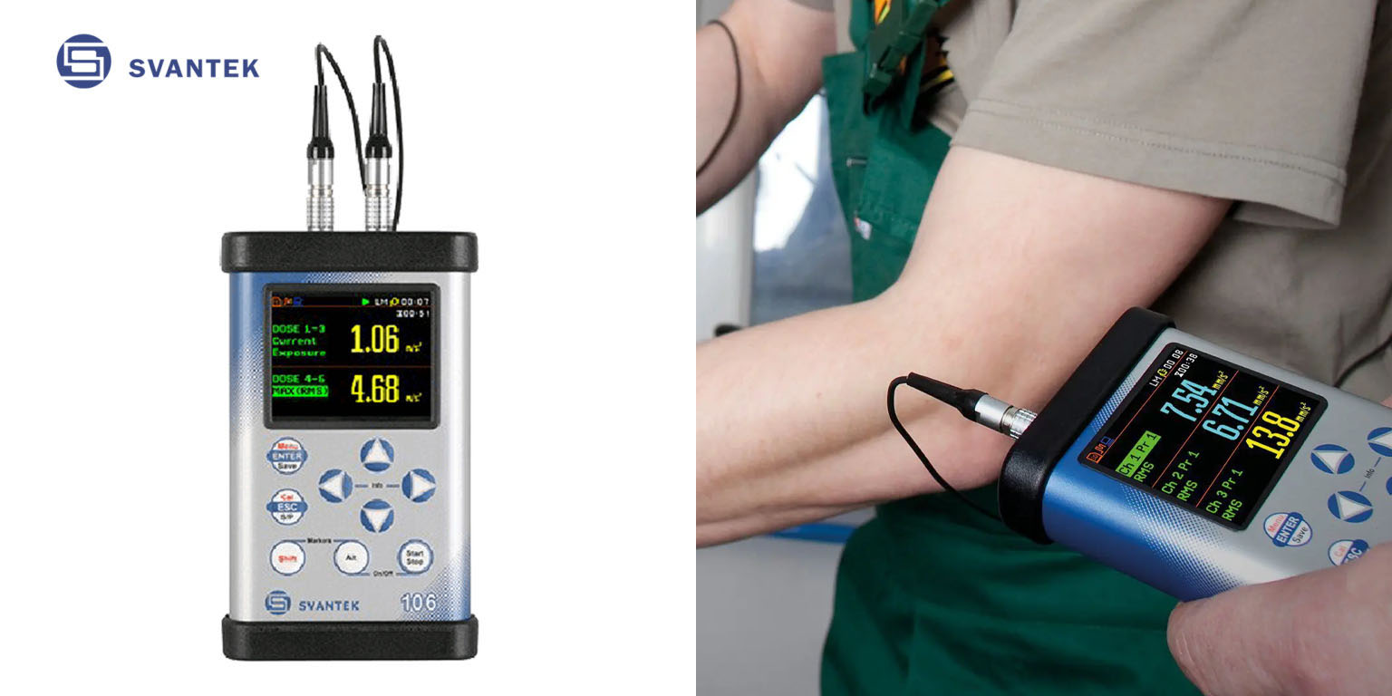 El analizador de vibraciones humanas de seis canales SV 106 conforme a normas de ISO 8041-1:2017 es una opción ideal para mediciones de acuerdo con ISO 2631-1,2&5 y ISO 5349. Este revolucionario instrumento de bolsillo permite mediciones simultáneas con dos acelerómetros triaxiales (por ejemplo, para ambas manos o medidas de transmisión de SEAT triaxiales son posibles).