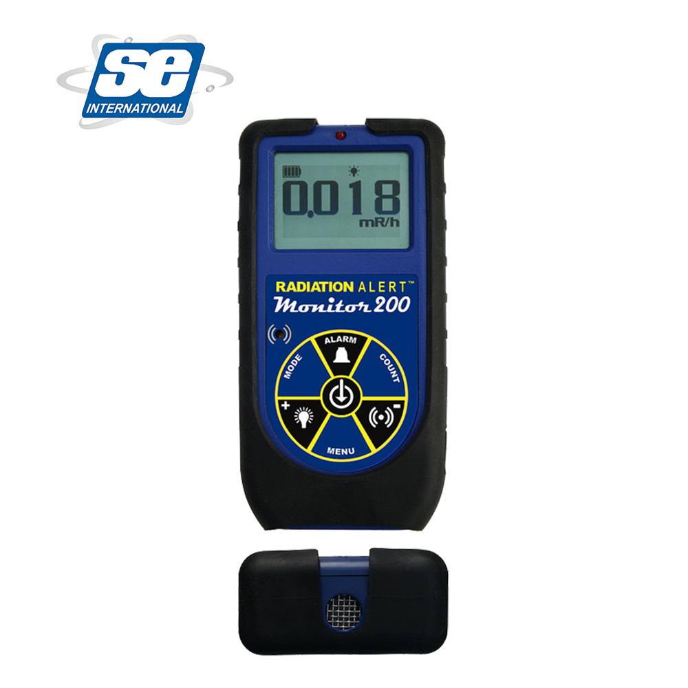 El Monitor 200 mide rayos alfa, beta, gamma y rayos X. Su pantalla digital muestra lecturas en su elección de CPM, CPS, μSv / hr, mR / hr, o en recuentos acumulados. Tiene una pantalla retroiluminada digital fácil de leer, una luz roja de conteo y un pitido que suena con cada conteo detectado. Esta unidad también incluye un temporizador ajustable y una alerta fuerte y personalizable.